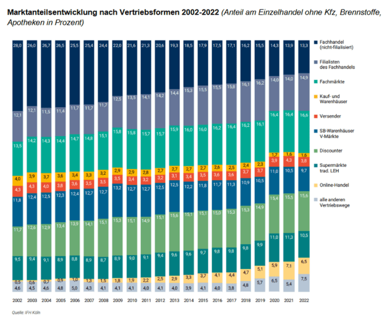 Fachhandel verliert weitere Anteile 30. August 2023 Marktanteil des nicht filialisierten Fachhandels innerhalb von zwanzig Jahren halbiert Weiterlesen >