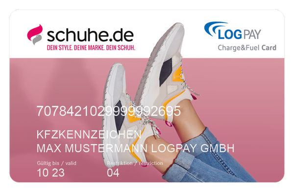 Die individuelle LOGPAY-Tankkarte mit eigenem CI und CD ist nicht nur ein Marketing-Gadget, sondern bietet eine große Vielfalt an Benefits. Die Verbundgruppe hatte die Möglichkeit, eine der drei zur Verfügung stehenden Tankkarten mit einem eigenen Branding zu versehen. Was lag näher als die Online-Plattform „schuhe.de“ zu weiter zu promoten? So bekommt der Nutzer bei jeder Betankung einen kleinen Reminder Kunde bei „schuhe.de“ zu werden, wenn er es nicht schon ist.