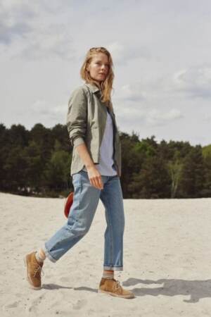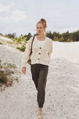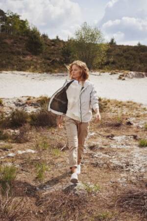 Das camel active-Markenzeichen besteht in dem Match aus Casual und Performance Wear: Natürlichkeit wird über Baumwolle, Leinen, Viskose oder Tencel transportiert. Denim ist neben Leinen Key. Die Kollektion orientiert sich am Alltag der Kundin: Um Dinge zu verstauen, sind Pockets wichtig. Um unabhängig von unterschiedlichen Temperaturen zu sein, werden Looks im Layering kreiert.