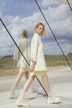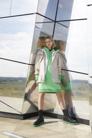Im März geht es um einen entspannten Look and Feel. Entsprechend der Jahreszeit liegt der Fokus auf saisonübergreifenden Styles, die im Lagenlook ein vielseitiges Styling ergeben, egal ob für den Tag oder die Nacht. Wichtiges Statement-Piece ist der Trenchcoat, der in Kombination mit Blusen und Hemden eine modische Alternative zum klassischen Blazer bildet. Zu den Key-Pieces in diesem Liefertermin zählen Blazer, bodycon Tops und die sleeveless trench vest. Wie Komfort und Funktion sich optimal verbinden, zeigen eine tailored Knit-Story aus einer Viskose-Polyamid-Mischung sowie hybride Looks im Materialmix. Sommerliche Streifen und Ombré-Verläufe in Blau-Grün unterstreichen das Gefühl von Sinnlichkeit und Leichtigkeit.