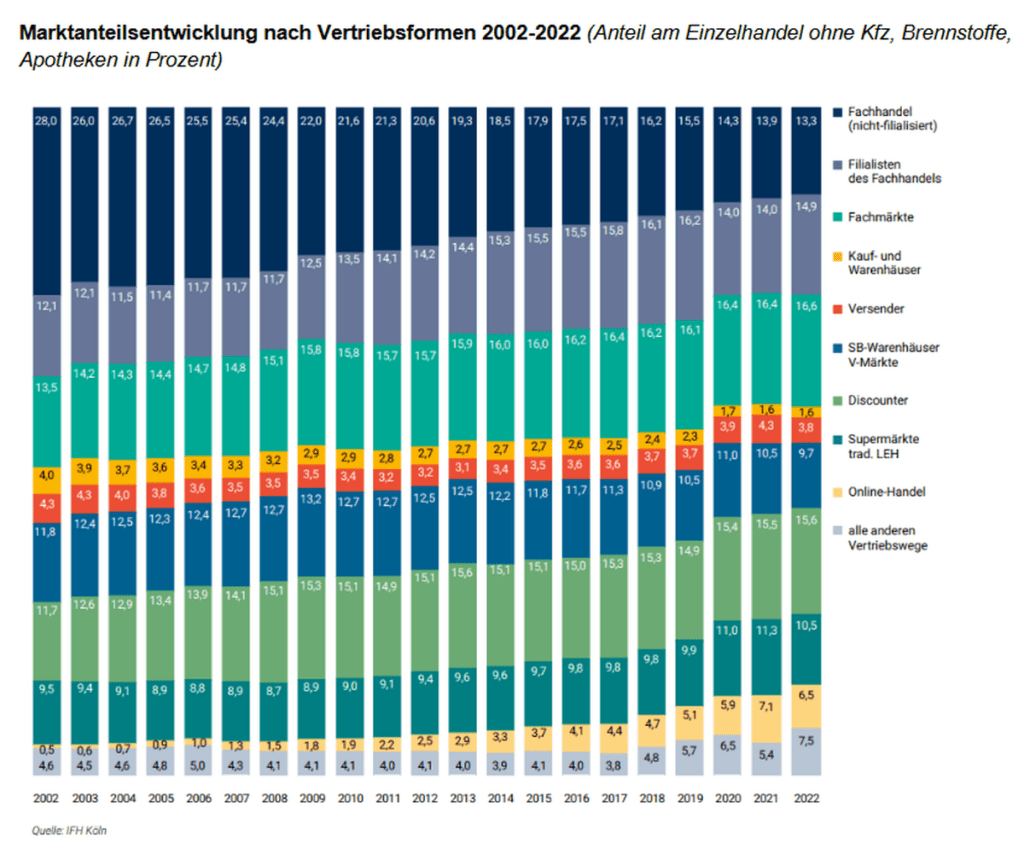 Marktanteil des nicht filialisierten Fachhandels innerhalb von zwanzig Jahren halbiert