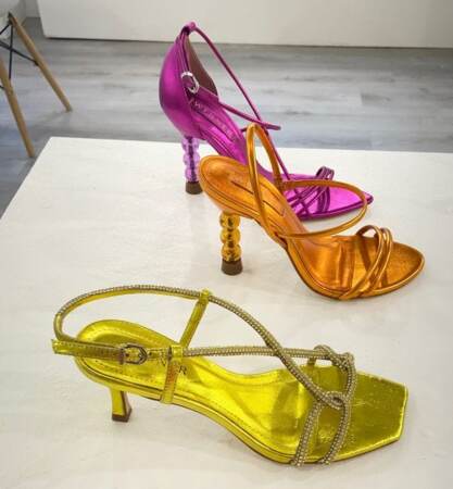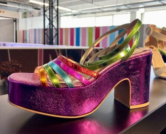 Mehr Farbe, mehr Glamour und die wieder entdeckte Freude an feminineren Styles sorgten bei strahlendem Sonnenschein für gute Laune. Orange, Pink, Flieder, Lemon und kräftige Grüntöne gehören zu den Favoriten. Das Dauerthema Sneaker verliert angesichts der Fülle an neuen Styles ein wenig an Bedeutung. Gefragt ist eine neue, entspannte Galanterie. Loafer bleiben. Klassische Ballerinas und Slings feiern ein Comeback. Karree kommt und dürfte auch bei filigranen Riemchen-Sandaletten und Pantoletten für spannende Impulse sorgen. Bei den Materialien darf es wieder glitzern und glänzen. Metallics und Schmucksteine sowie nach wie vor Big chains (große Ketten) verleihen den sommerlichen Styles Glamour mit Sex Appeal. Bei den Absätzen geht es hoch hinaus: Plateau ist in Italien schon jetzt das Trendthema Nummer eins.