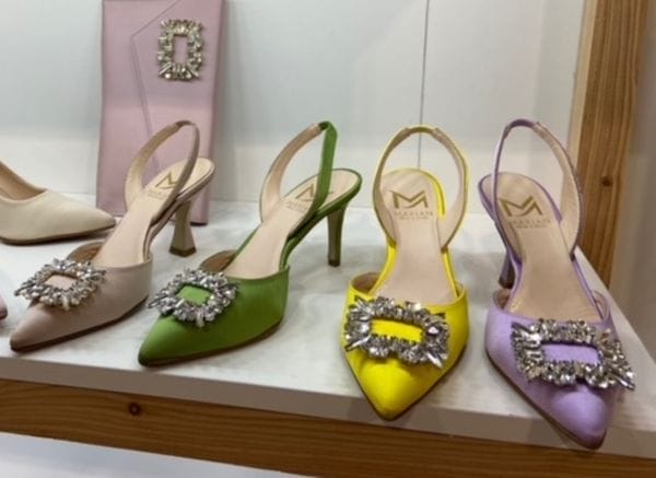 Der Begeisterung für Neues tut das aber keinen Abbruch. Zu den Highlights für Sommer 2022 gehören cleane Pantoletten in Pastelltönen, aber auch Loafer und Sneaker mit dicken Böden in cremigen Nuancen. Bei Marian kommen Slings mit opulenten Strass-Dekorationen gut an. Flieder ist die Farbe der Stunde. Daneben viele sportliche Sandalen, Römersandalen und mediterrane Espadrilles. Westernstiefel, am besten kniehoch und zu Mini oder Shorts getragen, wirken sexy. Ob sich das Thema in Deutschland durchsetzen wird, ist allerdings fraglich. Beim Thema Nachbestellungen rangieren chunky Boots in Offwhite, Camel und Oliv auf den vordersten Plätzen.