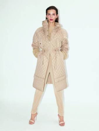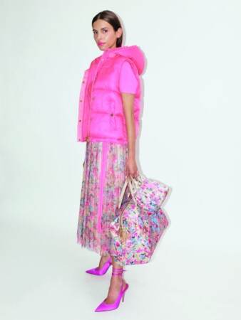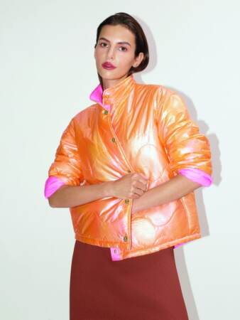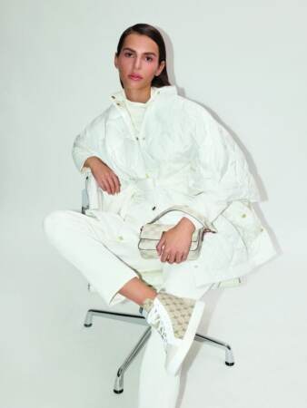 Die subtile Kombination von Chic und Nonchalance drückt sich auch in der Farbigkeit aus. Blanc Brillant, Crème, Mauve Bleu und Travertine stehen für edle, harmonische Töne, die mit Pink Fleur und Cannelle eine spannende Liaison eingehen. Bei den Drucken bieten ein softer Aquarell-Print sowie ein grafisches Dessin maximale Flexibilität. Das modische Highlight: Petites Pierres Cannelles, schimmernde Pailletten in Zimt.