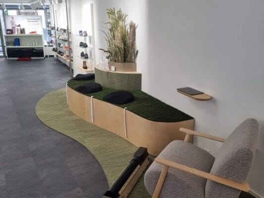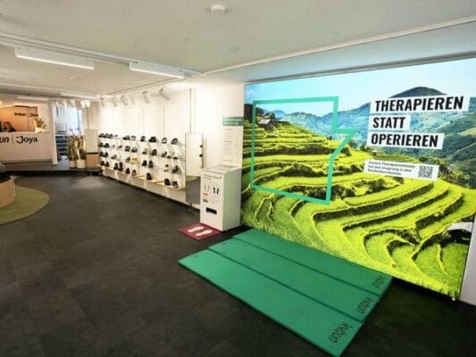 Der neue Shop ist über 153 Quadratmeter groß und bietet das gesamte Sortiment der beiden Marken Kybun und Joya an. Fußmassagen, Stehmatten und diverse Accessoires runden das Sortiment ab.
