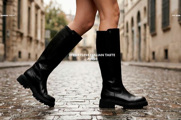 Im Rahmen der Messe stellte Manas die Herbst/Winter-Kollektion 2026 unter dem Titel „Effortless Italian Taste“ vor. Zum Sortiment zählen unter anderem Loafer, Stiefeletten und Bikerboots. Zum Einsatz kommen weiche Lederqualitäten mit gewachsten und bewusst unregelmäßigen Oberflächen sowie Konstruktionen, die auf Flexibilität und Dämpfung ausgelegt sind. Preislich positioniert sich die Kollektion im Premiumsegment.