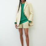 Ein neuer Fokus liegt auf der Konfektion. Sie reicht von komfortablem Tailoring aus flexiblem Cotton-Stretch bis zu Coordinates aus leichter, technischer Wool Blend. Echter Eyecatcher: die Kombi aus High-Rise-Pants mit Kick-Schlitz und langem Blazer in Limettengrün. Auch Interlock-Jersey kommt konfektioniert und feminin mit schmaler Silhouette.