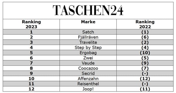 So überrascht es nicht, die Marken Satch und Travelite auf den vorderen Plätzen des Rankings wiederzufinden. Ungebrochen ist die Nachfrage für die Outdoor-Marke Fjällräven. In diesem Bereich spielt auch Vaude eine bedeutende Rolle, speziell für Verbraucher, die Wert auf nachhaltige Produkte legen. Angespannt bleibt die Lage in der Warengruppe Handtaschen. Hier erzielen Zwei und Joop! gute Ergebnisse und belegen im Ranking die Plätze 6 und 12. Neben vielen bekannten Marken finden sich einzelne Newcomer wie Secrid und Reisenthel im Ranking, die 2022 noch nicht unter den Top 12 rangierten.