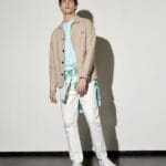 Das Thema Nachhaltigkeit zeigt sich in innovativen Re-Used-Denim-Teilen wie Overshirts, Jeans und Jacken, aber auch mit minimalistischen Mustern, Prints mit klaren Kanten und klassischen Streifen – inspiriert von Formen aus der Architektur.