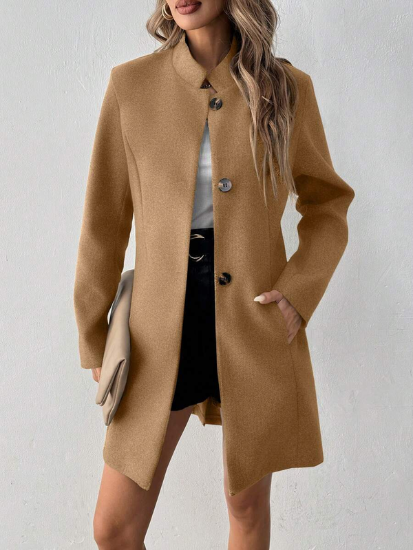 Diese Kunst-Wollmanteljacke mit Revers von TRAFZA schafft mit ihrem weichen Griff und dem lockeren Schnitt eine warme Atmosphäre. Das schlichte, einfarbige Design ist zeitlos, und die praktischen Taschendetails spiegeln das wirkliche Leben wider – für Handy, Schlüssel, Handschuhe, all die Dinge, die zum echten Leben gehören.