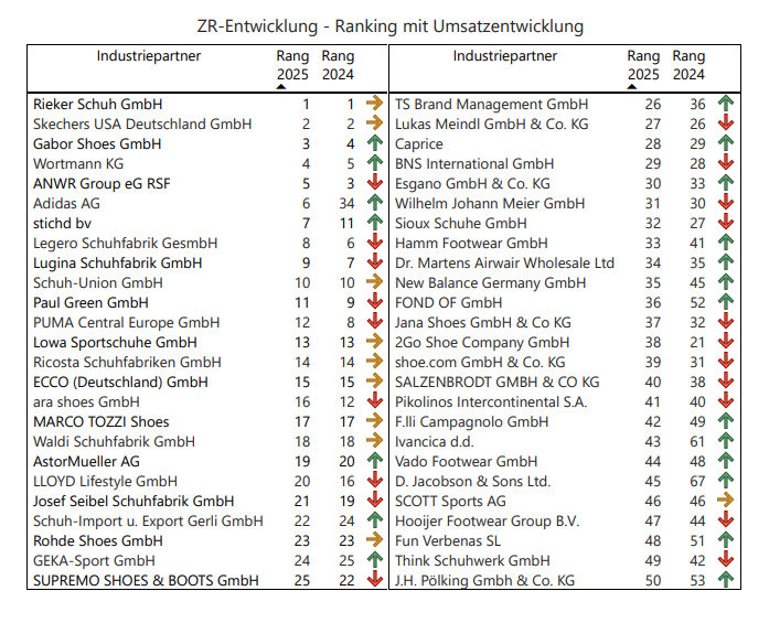 ANWR-Lieferanten-Ranking für 2025: Rieker bleibt vor Skechers