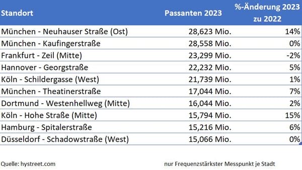 Gut besuchte Innenstädte im Jahr 2023