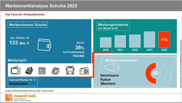 Werbemarkt für Schuhe: Erneut rückläufiges Werbevolumen 4. April 2025 Deichmann, Kybun und Skechers führen Werbe-Ranking an Weiterlesen >