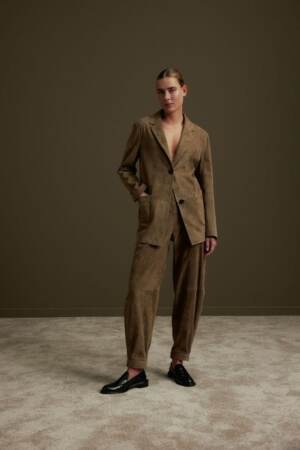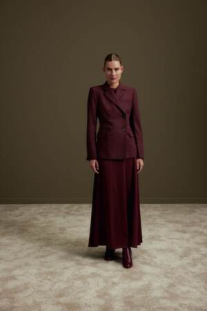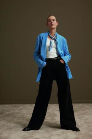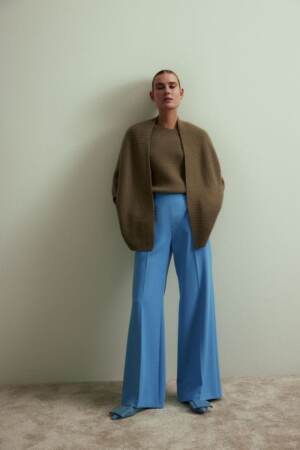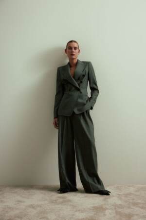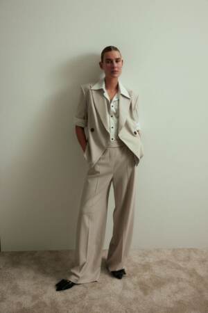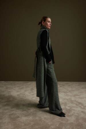 Weite Hosenformen mit Bundfalten oder Flatfront dominieren den Look, während lange, schmale Rockformen ein wichtiger Trend sind. Lange Tweed-Mantelwesten in Kombination mit weiten Hosen aus dem gleichen Material sorgen zudem für Statement-Looks. Luxuriöse Pepita-Double-Mäntel kontrastieren gekonnt mit clean interpretierten Hoodies und spielen mit inhaltlichen Gegensätzen, um eine spannende Dynamik zu erzeugen.