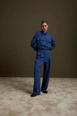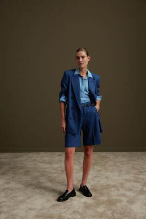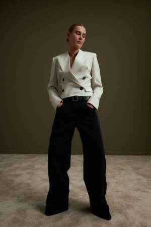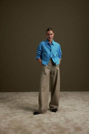 Klassische Baumwolle mit dezenten Bicolor-Effekten steht im Mittelpunkt, und der Trenchcoat inspiriert sowohl Jacken als auch raffinierte Kleider. Starke, vom klassischen Tailoring inspirierte Silhouetten verschmelzen lässige und voluminöse Formen mit schlanken Schnitten. Die Vielseitigkeit des Blazers zeigt sich in asymmetrischen Verknöpfungen, Shortsleeves, Cropped und superleichten Smoking-inspirierten Formen.