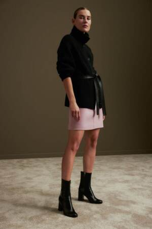 Eine aufregende Black-and-White-Story mit Fischgrat-Tweed, Doubleface-Pepita und Moulinés wird durch die Verbindung mit pastellfarbenen Elementen in Doubleface oder feinem Wolltwill in Szene gesetzt.